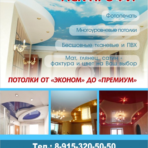 Компания «АРС-Сервис» уже 12 лет осуществляет комплекс услуг по монтажу и продаже натяжных потолков любого уровня сложности. У нас...